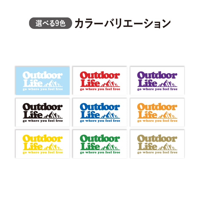 Outdoor Life 自由を感じる場所へ 山 イラスト ステッカー おしゃれ ちょうどいいサイズ感 キャンプ キャンパー オリジナル 遊び心 テント 山遊び アウトドア ライフスタイル 自由 フリーダム 車 カスタム